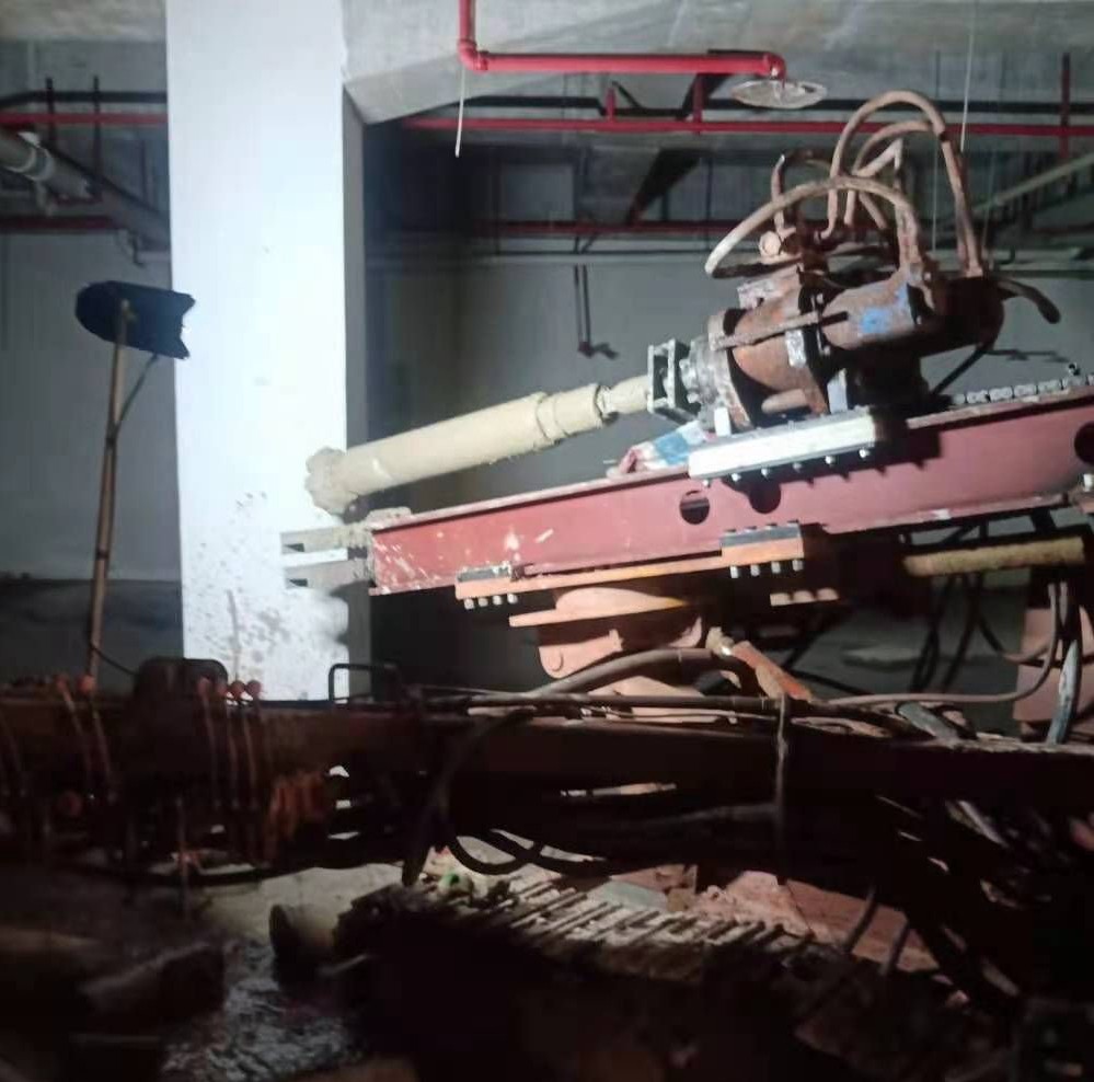 毕节某商品房建成后房屋整体下沉幅度超过设计标准,采用钢管桩对房屋基础进行治理。在最底层地下室内采用液压履带式钻机进行跟管钻进,成孔后跟管不拔出,跟管内灌注混凝土成钢管桩。